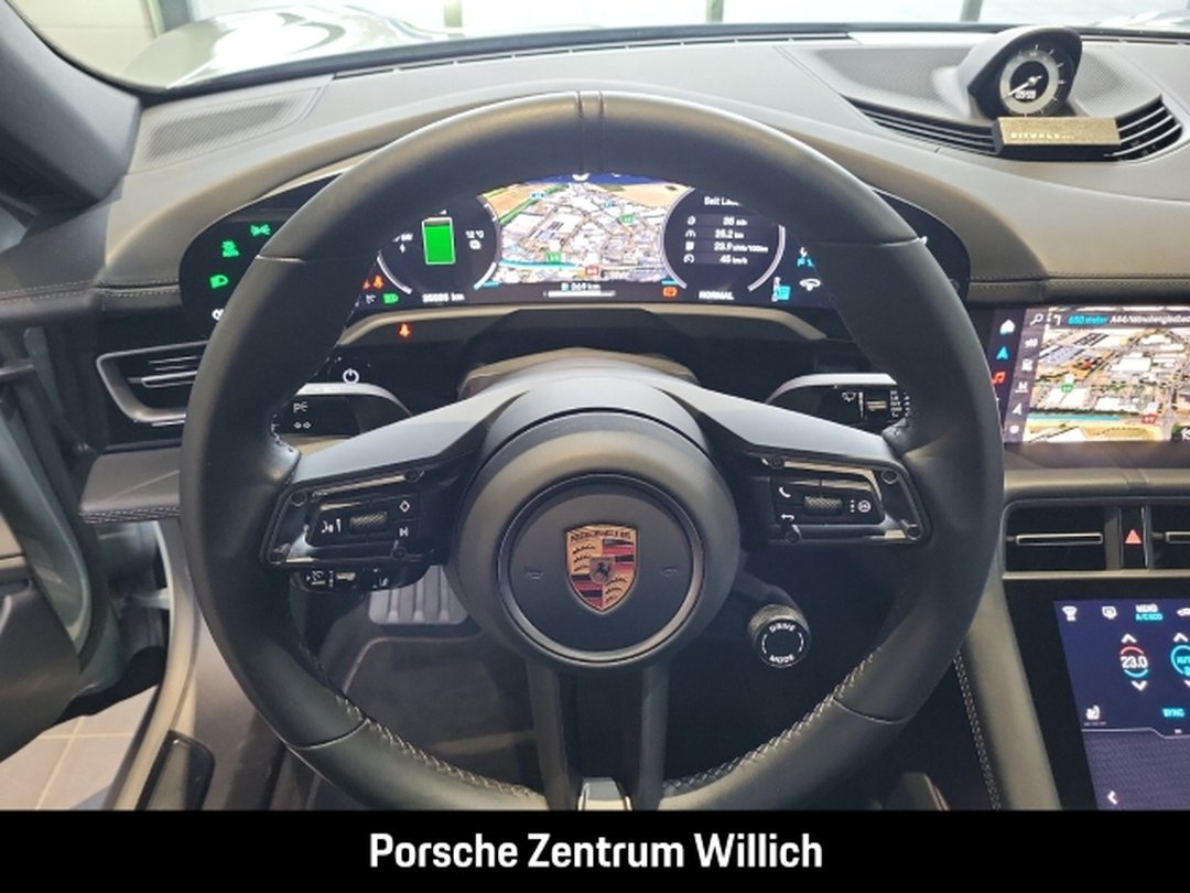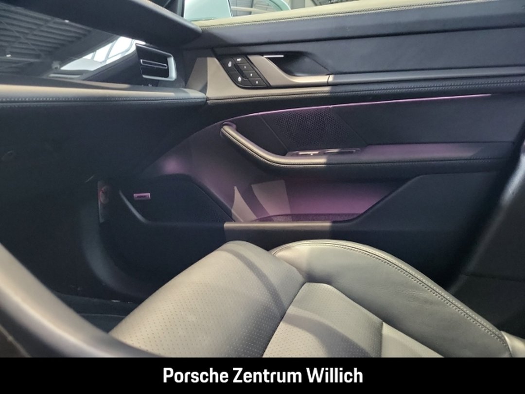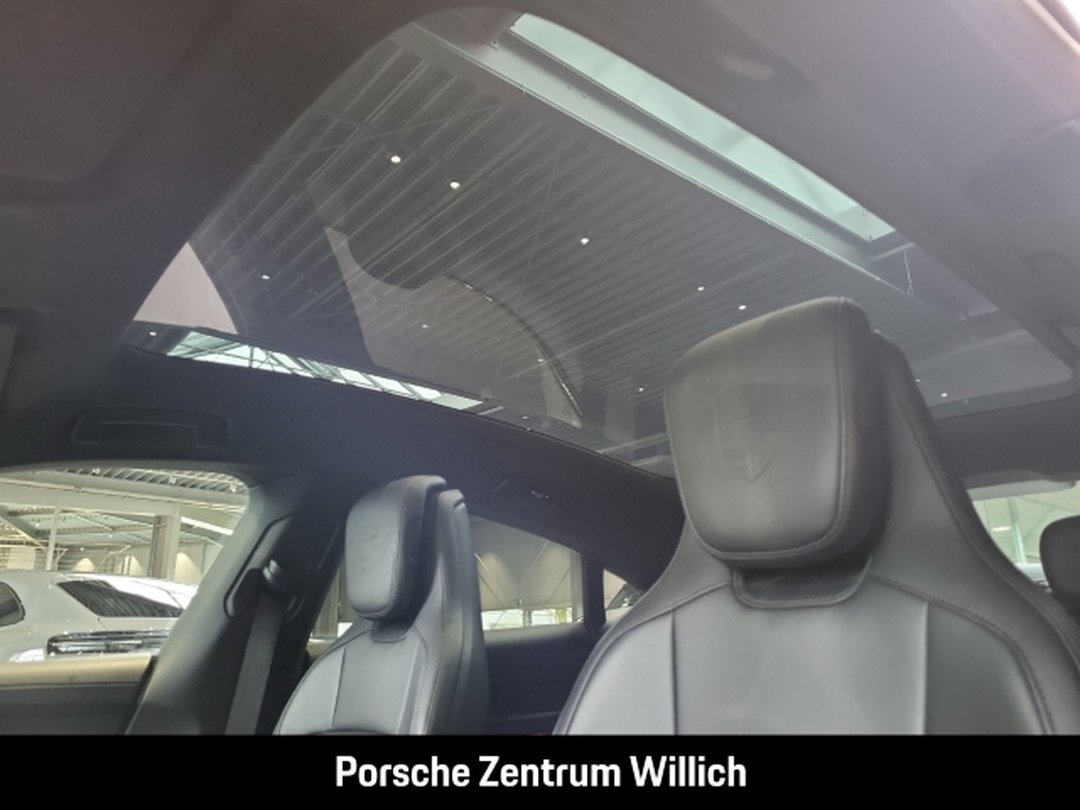 - Weiteres: (6FJ) Außenspiegel Unterschalen lackiert in Exterieurfarbe inkl. Spiegelfuß lackiert in Schwarz (hochglanz), (0NC) Modellbezeichnung lackiert in Schwarz (hochglanz), (2D5) SportDesign Paket lackiert in Schwarz (hochglanz), (QJ4) Seitenscheibenleisten in Schwarz (hochglanz), (6JA) Türöffner lackiert in Schwarz (hochglanz), (UD1) LED-Türprojektoren PORSCHE Schriftzug, (J9Q) Performancebatterie Plus, (8LH) Sport Chrono Paket, (1LR) Bremssättel lackiert in Schwarz (hochglanz), (GM3) Porsche Electric Sport Sound, (1NV) Räder lackiert in Schwarz (hochglanz), (1G8) Reifendichtmittel mit elektrischem Kompressor, (64V) 21-Zoll Taycan Exclusive Design Räder lackiert in Schwarz (hochglanz) mit Aeroblades, (5ZF) Porsche Wappen auf Kopfstützen (Vorder- und äußere Fondsitze), (Q2J) Komfortsitze vorn (14-Wege, elektrisch) mit Memory-Paket, (5KA) 4+1 Sitzanlage, (4A4) Sitzheizung vorn und hinten, (UP3) Zifferblatt Sport Chrono Stoppuhr und Powermeter weiß, (VT9) Türeinstiegsblenden Aluminium gebürstet in Schwarz, beleuchtet, (6E2) Porsche Wappen auf Deckel Ablagefach Mittelkonsole, (AVM) Cupholderblende Leder, (9VL) BOSE® Surround Sound-System, (8JU) HD-Matrix LED-Hauptscheinwerfer abgedunkelt mit 4-Punkt Tagfahrlicht in Gletschereisblau, (8VL) Leuchtenband mit beleuchtetem PORSCHE Schriftzug schwarz, (3FG) Panoramadach, (VW1) Privacy-Verglasung, (FT3) Surround View inkl. Aktive Einparkunterstützung, (P4S) Porsche InnoDrive inkl. Aktive Spurführung, (7Y8) Spurwechselassistent
