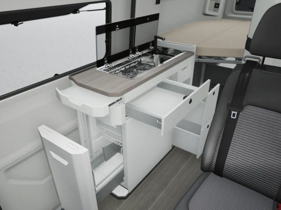 - 3RS Heckflügeltüren mit Camperfenster California-Campertisch und 2 CaliforniaKlappstühle für Außenbereich